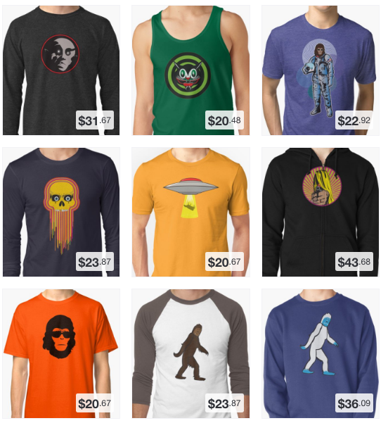 Whereas before, 3-D Monster merchandise was relegated to only art prints, T-Shirts and decals, selling through Red Bubble allows me to greatly expand the product lines to include items such as;